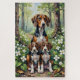 Una escena pacífica de una familia de Treeing Walker Coonhound ambientada en un claro tranquilo del bosque. Con un perro adulto alerta y dos cachorros adorables, esta obra de arte captura la naturaleza, la profundidad y el encanto del bosque, perfecta para los amantes de los perros y la decoración rústica.