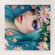 chica bonito con flores en su pelo azul. Hermosos ojos azules con piel pálida cuento arte de fantasía.