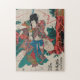 Arte japonés - el samurai con la espada en la pintura japonesa de Ukiyo-e de la demostración de Kabuki de un samurai con una espada unsheated y un pelo enrrollado en un kabuki muestran. Kabuki es una demostración tradicional popular del teatro que comenzó en Japón feudal y aún popular incluso hoy. Ukiyo-e es un viejo estilo de la pintura japonesa y popular durante el período de Edo de civilización de Japnese. Las pinturas de Ukiyo-e están generalmente sobre leyendas japonesas, mujer hermosa, vida salvaje y acontecimientos recientes en la sociedad japonesa en ese tiempo actual.
