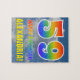Este vibrante, divertido y emocionante diseño de rompecabezas con temática de cumpleaños presenta un cielo azul con fondo de patrón de nubes, un gran número de "59" y "FELIZ CUMPLEAÑOS", ambos con un patrón de gradiente inspirado en el espectro multicolor, y un nombre personalizado. Un enigma de cumpleaños feliz, colorido y personalizable como este podría ser una manera divertida de mandar deseos de cumpleaños a alguien que está celebrando su cumpleaños número cincuenta. [~Z0000375]
