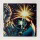 Comic book pop art style ai art retratando a un astronauta flotando por el espacio con un reflejo de un OVNI en su casco.