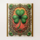 Este exquisito ilustracion de trébol está diseñado en un estilo celta decorativo con adornos intrincados y tonos cálidos. Un símbolo de suerte y prosperidad, rodeado de delicadas tallaciones y detalles vintage, es una elección perfecta para los amantes de la cultura irlandesa y de la estética mística.