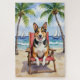 An alert Australian Cattle Dog enjoying a bright coastal setting with tropical elements and ocean views. The painterly detail and centered layout create a lively yet balanced design.