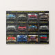 Un rompecabezas ilustrado con un collage de las fotografías de las parrillas americanas clásicas del automóvil a partir de los años 50.