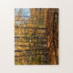 This scenic puzzle shows a forest with autumn foliage in warm colors.