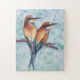 Hermosas y espléndidas Aves Tropicales sentadas en un árbol - azul, óxido y amarillo son los colores que aparecen en estos dos pájaros Jigsaw Puzzle - .. horas de diversión con familia y amigos y un gran regalo para cumpleaños. El diseñador ha pintado imágenes con acuarelas