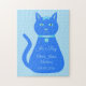 Este impresionante rompecabezas de anuncio de nacimiento presenta una imagen de arte digital de un lindo gato azul con una cola rizada. Sus ojos son azul pálido con pupilas negras. Lleva un arco rosado en el cabello y un lustrante cuello azul con una ficha azul en el cuello. El diseño es perfecto para celebrar a un niño. Hay texto personalizado en el gato para que puedas incluir todos los detalles importantes.
