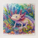 El rompecabezas presenta obras de arte vibrantes, multicolores de un axolotl entre una variedad de plantas. La base del salamandra es rosa y parece sonreír. Un colorido ilustracion acuático de un único animal de agua dulce de México.