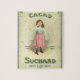 Sucard del antiguo Cacao — Azúcar de chocolate de Francia Ciertamente les encantaba su chocolate en la Francia victoriana. Sucard de cacao significa Azúcar de chocolate. La niña de edad te está dando un beso, un beso de chocolate. El pequeño chica vintage ama el chocolate. La imagen anticuada se imprimió originalmente en una lata de chocolate de 1900 —publicidad de chocolate vintage. El fondo es de color verde antiguo y blanco antiguo, mientras que la pequeña se pone de pie, y te da un beso. La imagen anticuada es una pequeña chica de pelo marrón que lleva su caja de chocolates. Lleva un lindo vestido azul y rosa. Este es el bello arte publicitario vintage perfecto para los amantes del chocolate.