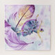 Hermosa bailarina Ballerina con plumas, difícil rompecabezas. La bailarina se viste de azul con flores y guarnecido de lavanda. El fondo combina con los colores de las plumas y de la Ballerina. Un rompecabezas que vale la pena colgar en tu pared cuando esté terminado. Gracias a Creative Fabrica por los elementos del diseño.