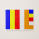 La bandera budista es una bandera diseñada a finales del siglo XIX para simbolizar y representar universalmente al budismo. Es utilizado por budistas de todo el mundo. Las seis bandas verticales de la bandera representan los seis colores del aura que los budistas creen emanaron del cuerpo de Buda cuando alcanzó la Ilustración: Azul (Nila): Amor, bondad, paz y compasión universal Amarillo (Pita): Camino Medio - evitar extremos, vacío Rojo (Lohita): Las bendiciones de la práctica - logro, sabiduría, virtud, fortuna y dignidad (Blanco) datos): La pureza de Dharma - que conduce a la liberación, fuera del tiempo o Naranja espacial (Manjesta): Las enseñanzas de Buda - sabiduría La sexta banda vertical, sobre la marcha, está compuesta por una combinación de bandas rectangulares de los otros cinco colores, y representa un compuesto de los otros cinco colores del espectro aura. Este color compuesto se denomina Pabbhassara ("esencia de la luz"). Globe Trotters se especializa en imágenes idiosincrásicas de todo el mundo. Aquí encontrará tarjetas de felicitación únicas, postales, Posters, Mousepads y más.