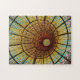 Diviértase con este puzzle colorido que muestra el espléndido tragaluz de vidrio manchado dentro de la sala de conciertos del Palau de la Música Catalana en Barcelona, España!