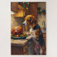 This charming and relatable illustration captures the Beagle's famous appetite, with the hound intently sniffing out holiday treats on a cozy, decorated kitchen counter. A perfect, detailed design for Beagle owners this Christmas.