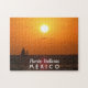 Spend time at home with your friends or family as you have fun putting together this gorgeous landscape travel jigsaw puzzle. This design features a beautiful photo of a boat at sunset on the ocean in Puerto Vallarta, Mexico.