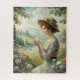 Una dama disfruta de una taza de té en el jardín de flores