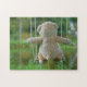 Puzzle Beer op schommel vanaf de rug.