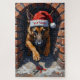 This intense, high-energy digital painting captures the drive and focus of the Belgian Malinois, seen wearing a tactical Santa hat while expertly navigating a chimney flue to retrieve a crucial Christmas key. A dynamic and unique holiday design for Malinois enthusiasts.