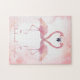 Este rompecabezas presenta dos flamencos rosados de besos de color agua. Debajo de los flamencos puede añadir sus nombres en una fuente cursiva rosa de coordinación. El rompecabezas tiene un fondo de lavado de color rosa.