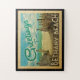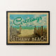 El diseño de esta postal antigua de Greetings From Bethany Beach presenta una playa de arena con un hermoso agua turquesa del océano y sobre el mar, un cielo azul con nubes blancas onduladas. En estilo de viajes vintage.