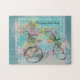 Puzzle Bicicleta con cestas de flores en la burlap azul