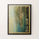Big Sur California design in Vintage Travel style featuring the Bixby Creek Bridge and the Pacific Ocean.