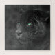 En las profundidades de la oscuridad, emerge un jaguar negro y elegante, con su forma cubierta de tonos monocromos. Sin embargo, en medio de la sombría silueta, sus ojos brillan con un verde intenso y penetrante, irradiando un aura de mística y poder.