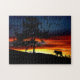 Puzzle Black Silhouette of Wolf, Birds and Tree in Sunset