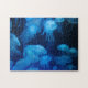 Único rompecabezas de medusas azules. Foto tomada en el Acuario de Florida en Tampa. El color proviene de la iluminación del acuario en el tanque.