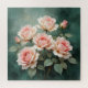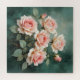 This elegant floral artwork features soft blush and ivory roses in full bloom, delicately painted with refined detail and graceful depth. Set against a rich deep jade green background, the composition creates a calm yet luxurious atmosphere that feels timeless and sophisticated.