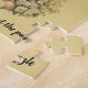 Rompecabezas fáciles de personalizar, sólo tienes que añadir tu propio mensaje especial! Diseño de retrato de ilustracion victoriano de boda con perfil de novia. La hermosa novia está en su vestido boda con velo sosteniendo un ramo de flores blancas.