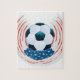 El balón de fútbol o del fútbol y los movimientos del blanco del grunge, rojos y azules del cepillo diseñan.