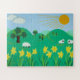 El original y bonito ilustracion infantil de este rompecabezas está pintado en una especie de estilo "nieve", es brillante y colorido. la imagen muestra algunas ovejas blancas y onduladas con la cara negra pastoreando detrás de daffodils en la ladera de la colina, el cielo es azul con nubes esponjosas y el sol brilla. En el fondo se pueden ver algunos árboles verdes cubiertos de hojas con manzanas rojas. Este rompecabezas de imagen infantil es fácil de armar porque las imágenes están pintadas en colores sólidos con contornos exactos. Este rompecabezas será disfrutado por todas las edades.