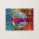 Rompecabezas de 8" x 10" con una imagen de luces de disco rojas, naranjas, amarillas, verdes y azules, una brillante bola de disco espejo y "Boogie On" con letras rojas, naranjas y violetas. Vea toda la colección Puzzle de Disco 70 en las ACTIVIDADES | Sección Puzzles.