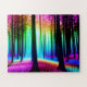 Puzzle Bosque encantado de arcoiris con siluetas de árbol