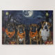 Desata el espíritu espeluznante con este diseño espeluznante de Halloween que presenta una manada de perros bajo un cielo oscuro iluminado por la luna, rodeado de murciélagos voladores y calabazas brillantes. ¡Perfecto para aquellos que aman un toque de diversión espantosa con sus amigos peludos!