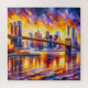 El puente de Brooklyn, una maravilla arquitectónica finalizada en 1883, simboliza la innovación industrial y la elegancia urbana. Sus amplios arcos y cables de acero conectan Brooklyn con Manhattan, encarnando el glamour atemporal y el significado histórico.Usando el estilo acrílico con tonos dorados y lavanda en esta maravillosa maravilla icónica.