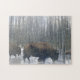Búfalo en la nieve con ápices. ¡Un rompecabezas desafiante y bonito!
