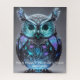 Una impresionante obra de arte que presenta un majestuoso búho con vibrantes plumas azules que brillan con luz etérea. Los ojos azules penetrantes del búho cautivan con sabiduría y misterio. Intrincados patrones adornan su plumaje, iluminados por acentos mágicos brillantes. Perfecto para amantes de la naturaleza y entusiastas del arte fantástico. Ideal para amantes de rompecabezas que buscan un desafío visualmente encantador.