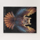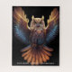Una impresionante obra de arte con un majestuoso búho con plumas azules vibrantes que brillan con luz etérea. Los ojos azules penetrantes del búho cautivan con sabiduría y misterio. Su plumaje está adornado con patrones intrincados, iluminados por acentos mágicos brillantes. Perfecto para los amantes de la naturaleza y para los amantes del arte fantástico. Ideal para los amantes del rompecabezas que buscan un reto visualmente encantador. Personalízalo con un mensaje amoroso o déjelo en blanco.
