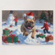 Puzzle Bulldog francés postula en nieve con Gorra Navidad