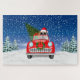 Un lindo regalo de Navidades para los amantes del perro, conducir un auto rojo en la nieve es una idea de regalo perfecta para alguien que ama a los perros.