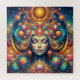 Relajado desconcertante - Cabello soleado de Diosa Cabeza Retrato de ojos cerrados - Mes de Julio Vibes - Este hermoso estilo ai Design muestra la cabeza de una mujer hermosa con los ojos relajados cerrados y la lujosa corona de joyas brillantes decorativas de sol en su rubio verde azulado cabello fluido, habitando en un universo celestial divino. Los colores principales de esta obra de arte son el amarillo naranja dorado y el azul turquesa verde azulado.