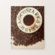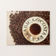 Bonito rompecabezas de rompecabezas relajantes con una taza de café en granos de café. El platillo de la taza dice Coasta Rica y Arabica. Buena idea de regalo para los amantes del café y los baristas.