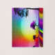 ¿Quién sabe a dónde conducirá este camino de colores arcoiris? Una ciudad distante y descolorida se ve en el fondo, atravesada por árboles morados y siluetas.