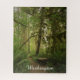 Espléndido y acogedor banco ubicado en los exuberantes bosques del Parque Nacional de Cascades del Norte, Washington.