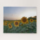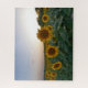 Bonita foto de un campo de plantas de girasol con el sol cayendo al fondo