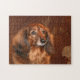 De pelo largo, el rojo coloreó el rompecabezas de la foto de la cara del dachshund