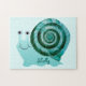 Rompecabezas de rompecabezas de 11" x 14" con una imagen de un caracol azul oscuro adorable sobre el agua. Nombre del personalizable. Vea toda la colección Kidz Korner Puzzle bajo la categoría HOME en la sección KIDZ KORNER.