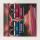 Camiones de los años 60 corriendo por un camino de tierra roja juntos a través del país y pateando la suciedad con una puesta de sol rosa en la distancia. El camión izquierdo es rojo, la derecha es azul real. Añadir nombres personalizados a los portaobjetos usando nuestra plantilla!