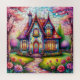 Una vibrante escena de una casita de campo imponente rodeada de flores, con vidrieras y detalles intrincados que crean un ambiente mágico.